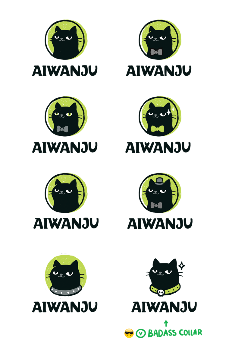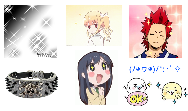 Я стала пробовать добавлять разные элементы и вспомнила, что как-то видела смешной ошейник с шипами. В итоге нашлось решение получше бабочки и шляпы. Также была добавлена звездочка (sparkle) — часто используемый прием в манге и аниме, чтобы показать воодушевление, приподнятое настроение или подмигивание.