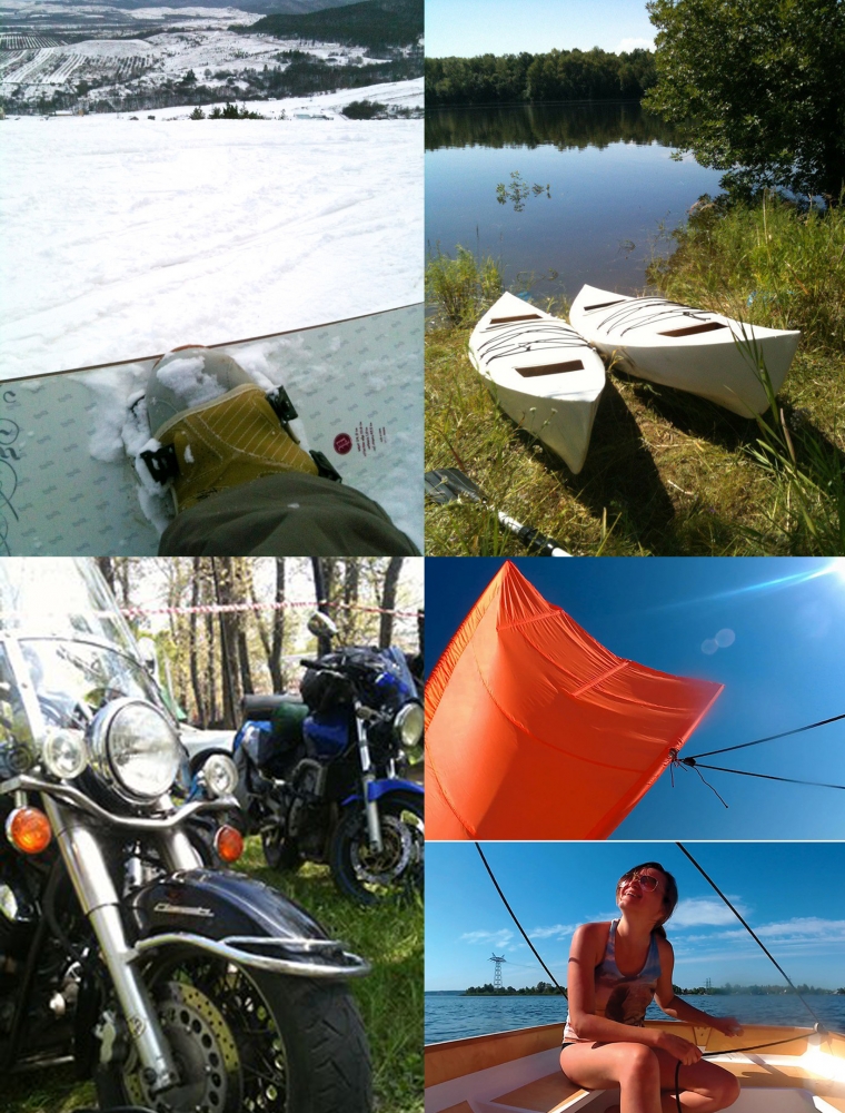 Велосипед, бильярд, байк-фесты, рок-концерты, квартирники, сноуборд, попытки освоить кайт)) йога, с переменным успехом тренажерный зал, путешествия…2 котэ, аквариум с креветками блю-дримс «мои синии чуваки», летние вылазки на природу с палатками, кострами..сгущенкой). Прошлой весной со своей второй половиной спроектировали и построили каяки, теперь еще и заплывы по Волге и притокам добавились. А ну и давно уже в хобби можно записать –бесконечный ремонт)) В общем как говорится «за любой кипиш кроме голодовки»
