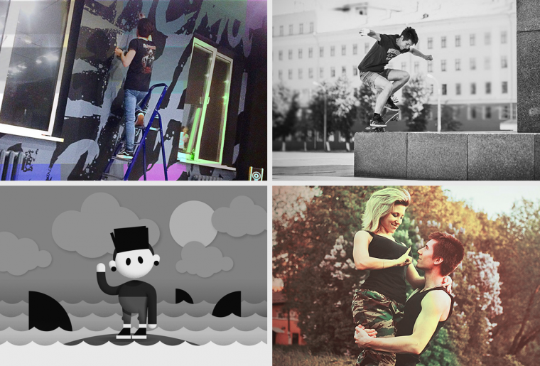 работаю в рекламном агенстве) логотипы и попытки иллюстрации – это фриланс и хобби. лет с 15 увлекаюсь скейтбордингом) skate 4 life, skate or die и так далее=)) свободное время стараюсь проводить с женой, она у меня классная <3