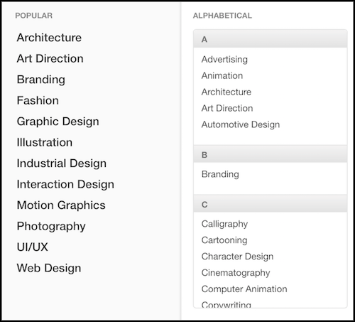 При выборе полей объявлений для проекта выберите поле объявления, которое представляет вашу роль, а не только работу в целом. Если ваш проект - короткометражный фильм, и ваша роль была в звуковом дизайне, убедитесь, что вы выбрали Sound Design, а не только фильм в целом, как поле для творчества.