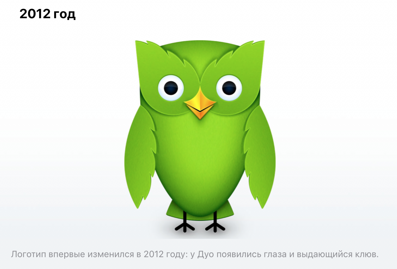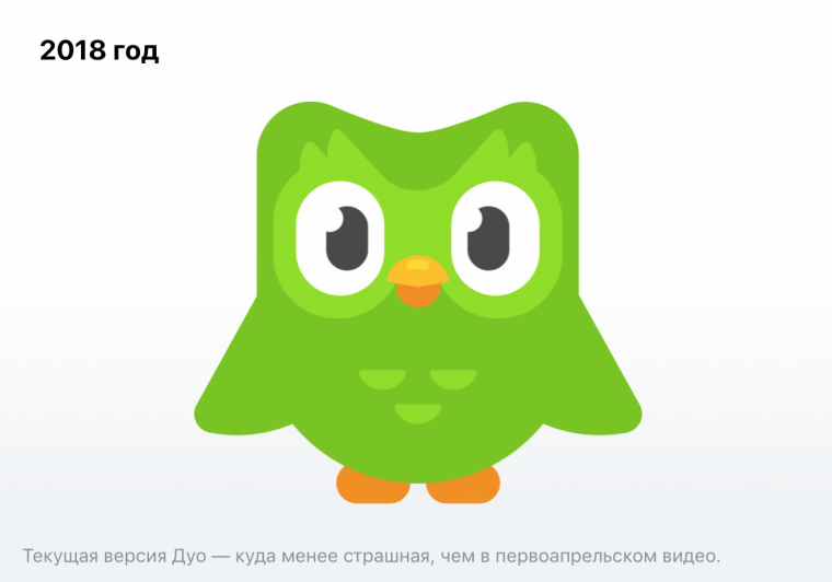 Мерфи: «Мы обновили всю визуальную часть приложения, в том числе и Дуо. Раньше у нас было два варианта совы: веселая и плачущая, но этого было недостаточно, чтобы считать Дуо живым персонажем. Он был похож на логотип Twitter — одна поза, одно выражение.