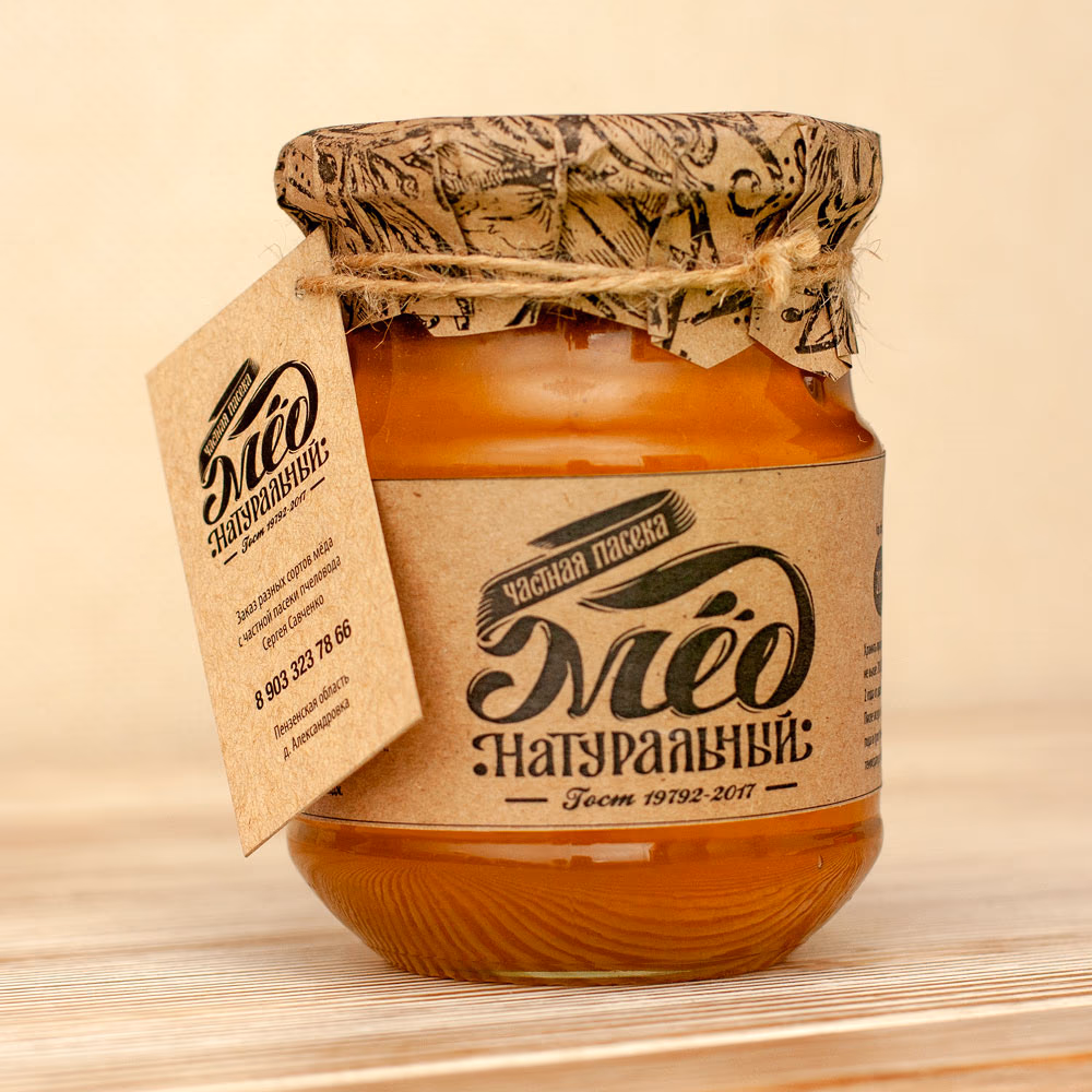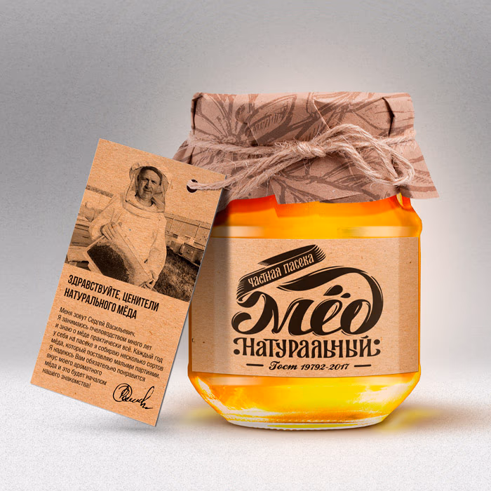 В итоге получился такой вот очень практичный крафтовый и уникальный дизайн банки мёда. Какое-то время клиент продавал такие банки в нескольких кондитерских-кафе и некоторых сетевых супермаркетах. А затем мы снова пересеклись с ним уже для разработки полноценного фирменно стиля и оформления всей его продуктовой линейки. Но это уже совсем другая история…