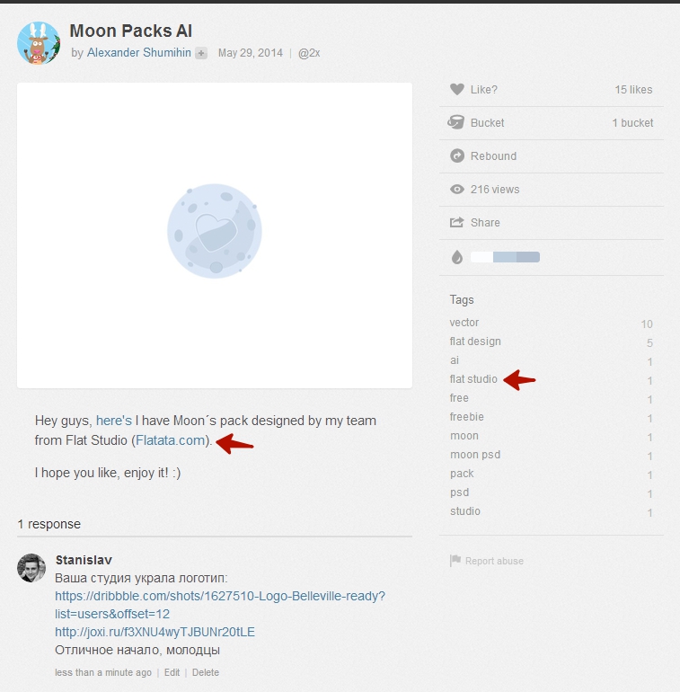@Silentну вот эта так полюбившаяся ворюгам лазейка: то, что они типа не пишут "наши работы" - просто бред, тк я к примеру тоже не пишу на каждой своей работе, что она моя, это ясно по умолчанию, если я публикую ее на своем сайте) Они обязаны тогда указать имя автора, если взяли работу в свободном доступе. А использовать чужую работу в коммерческих целях для привлечения клиентов без согласия автора они не имеют права однозначно. Рит, требуй, чтобы убрали или указали твое имя рядом с работой. Ну или сама напиши на дриббле, что эти люди не имеют никакого отношения к тебе (раз ссылка туда ведет))