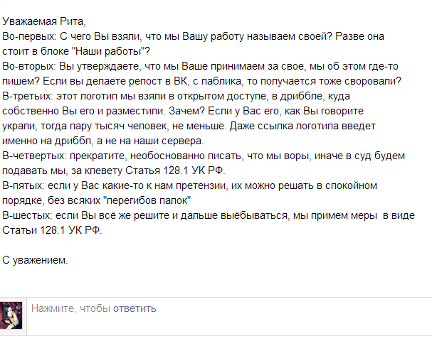 @zerographicsЧерный пиар, оборжаться, коварная Рита очернила честнейших людей, которые бесплатно рекламировали ее лого)))))