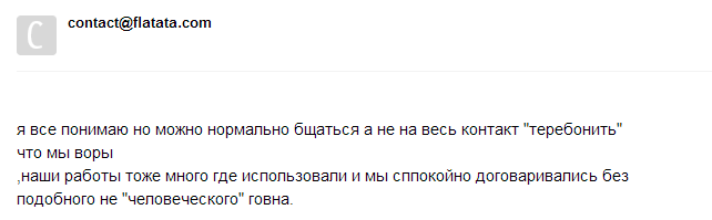 http://flatata.com/ru/#order-now обнаглевшие ребята, выставив мою работу на своём сайте на моё замечание ответили матом!