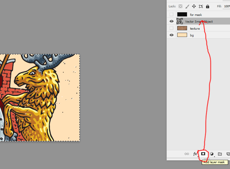На втором слое находится то, что мне надо зашершавить. При активном выделении жму внизу кнопку «добавить маску на выделенный слой и получаем такое.