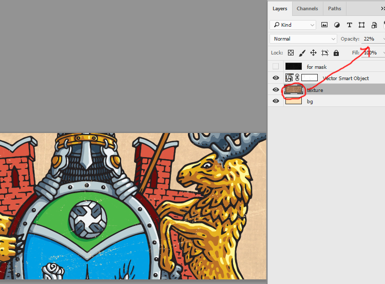 Третий слой приглушенная текстура. Четвертый – цвет фона. Наверняка есть куча других разных способов делать такое. Мне так привычнее.