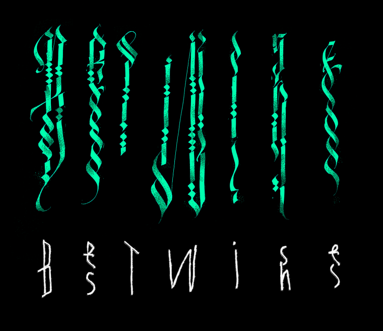 Сейчас я ушел совсем далеко — беру блоковые композиции, в формах букв читается как вязь с арабскими мотивами, так и готический скелет.