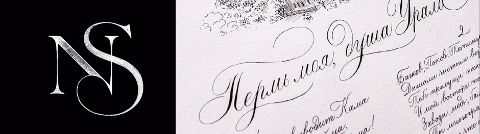 Ведь этот приём существует с давних времён, задолго до появления современных логотипов. В леттеринге используется контраст толстых и тонких штрихов для придания утончённости, как на примере работы Дэвида Сото, где лигатура соединяется настолько тонким штрихом, что это придаёт логотипу сверхизящность. В каллиграфии же давно заметили, что подобный приём работает эффективно, и применяли технику нажима в копперплейте. Посмотрите работу каллиграфа Варвары Пантелеевой «Пермь, моя душа...». Именно контраст усиливает красоту работы.
