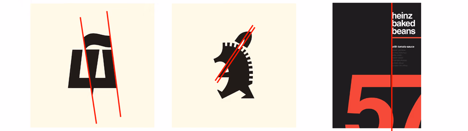 Перед вами пример поддержания линии из советских логотипов. Вы можете заметить, как ровно выстроенное по линии построение придаёт логичность замыслу, делает работу более упорядоченной и исключает случайность и нелепость. Также очевиден пример швейцарского постера.
